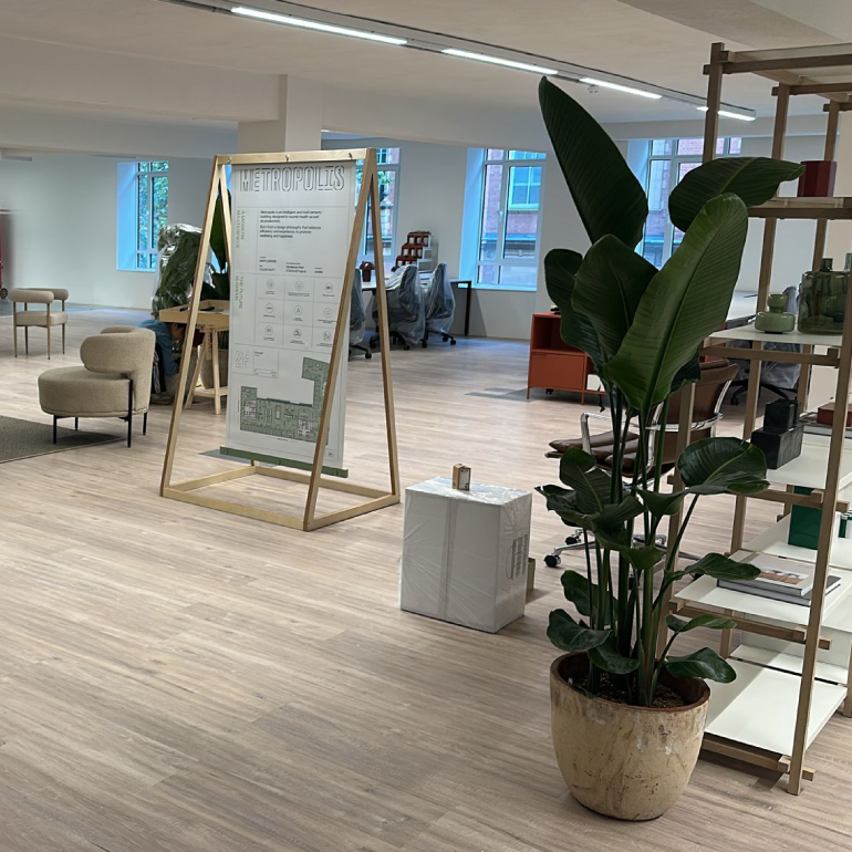 The Metropolis Building is being renovated into a multi-use workspace and retail destination, occupied by various companies. McLaren Group needed a new floor finish installed to support a large open-plan office being used as a marketing suite for showcasing the wider office spaces to prospective tenants.